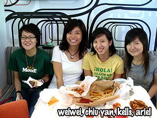 My neighbours hehe, Chiuyan's helping Azlin to curl her hair into sexy ringlets. That's what we do during office hours.. other than work and chatting with neighbours. Oh, Norraini in the background!