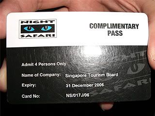 After the tram ride which took about 45 mins, we went exploring on the walking trails. :) It was fun! We're like explorers in the dark. The more memorable ones were the leopard enclosure and the bats exhibit. The leopard saw us and came right up to the glass panel and start pacing in front of us, back and forth, back and forth. It was really scary, it's a giant cat and if the glass collapse, we are gonna be dinner man. And the bats, they are sooo big! Like rats with wings... hehehe x) It was really an upclose experience.