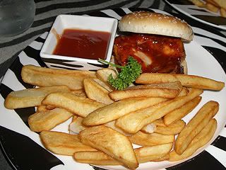 My BBQ Chicken burger! x) Tasted really good. Bern had his Bongo Burger set x)