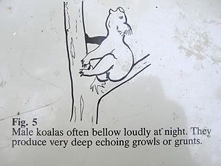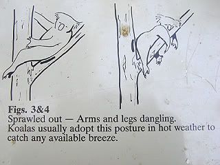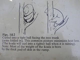 See! This koala is sleeping happily. These figures show the different postures koalas assume when they are sleeping and what they mean (Figures found at the koalas enclosure)