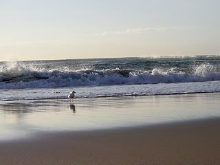 It was a peaceful morning, the weather was kinda chilly but people were up and about doing their thing. People were going on their jogs, and I think I remembered seeing people still surfing! WOW! And the waves were really huge =D Think the skimmers doing their thing in East Coast or Sentosa would think they've died and gone to Heaven if they come here. I took off my slippers and went to play with the waters. Baaaaad move. The water was freezing cold! My feet were feeling numb and frozen throughout the rest of the walk till we got back to the hotel.