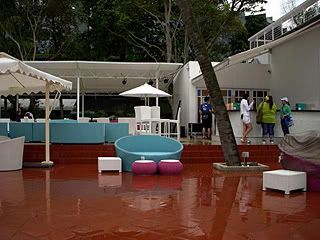 It was drizzling slightly on our way there, and also when we walked over to Cafe Del Mar after we disembarked from the bus. It was a slow walk because it was drizzling. And finally we arrived! We had the area cordoned off for us, but all of us stayed in the sheltered area as it was still drizzling.