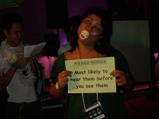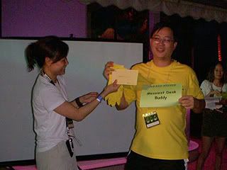 Soon, we have our awards ceremony. For weeks leading up to the party, our bar counter at the pantry had been lined up with boxes for people to drop their votes into. You know the application "Superlatives" in facebook? Yup, it's something like that. We have several categories, "Most likely to have a blonde moment", "Most likely to be a chimney", "Most likely to party like a rockstar", etc.