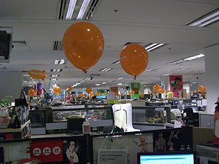 This is the first office party that I've attended. :) It was a Wednesday and maybe a little too advanced to celebrate Christmas, but heck it since we can escape work earlier than usual! =D After our townhall meeting, we went back to our desks to pack up and make our way downstairs to wait for the buses. We didn't move off as a whole company because some of us had to go later because they needed a longer period of time to finish their work. :) Oh yah! We also had a surprise when we stepped into office today, we all had balloons tied to our phones and we have a cupcake on our table :)