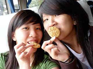 I was supposed to have a window seat, but my uncle wants it and thats what he'll get :) The seats were really cramped. =( Very uncomfortable. Imagine staying in one position for close to 4 hours. I was really scared because there was slight turbulence not long after take-off and the plane felt really light. When uncle wanna go to the loo, I was squashed. I had to leave my legs and cross it over my cousin Edbe to let uncle get out. Ahhh!! I'm swearing off budget airlines unless it's a 2-hours flight max. So when uncle's away, I took some pictures of the girls!