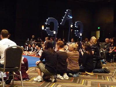 But anyway, when the doors opened, people started making their way quickly into the ballroom. We found seats right in front, though our view were sorta obstructed by the the rows of people in front and the cameras. Halfway through the morning session, we moved over to the side where we sat in the first row and we got a clear view though it's from the side.