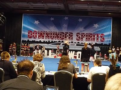 Cheer mums of kids from Tea Tree Gully being asked by the host to come onto the competition ground to do a short... cheer for the team they supported while the judges were still busy with tabulating scores.