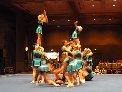 Their style of uniform reminds me of Thailand's :) Speaking of uniforms, most teams adopted a very.... simple style, very American, nothing too.... creative. *Most teams don't even bare their midriffs!* I think there's potential for cheer fashion here.